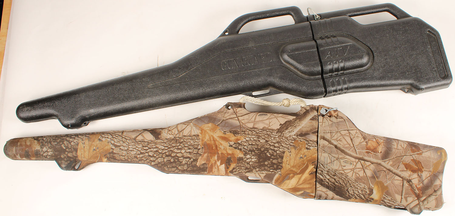 Lot of two, hard plastic gun ''sleeves'', black Gunguard ATV case measures 52 1/2'' long, Kolpin camo Gun boot is 51'' long. Grade: Excellent - Value: 30 to 60