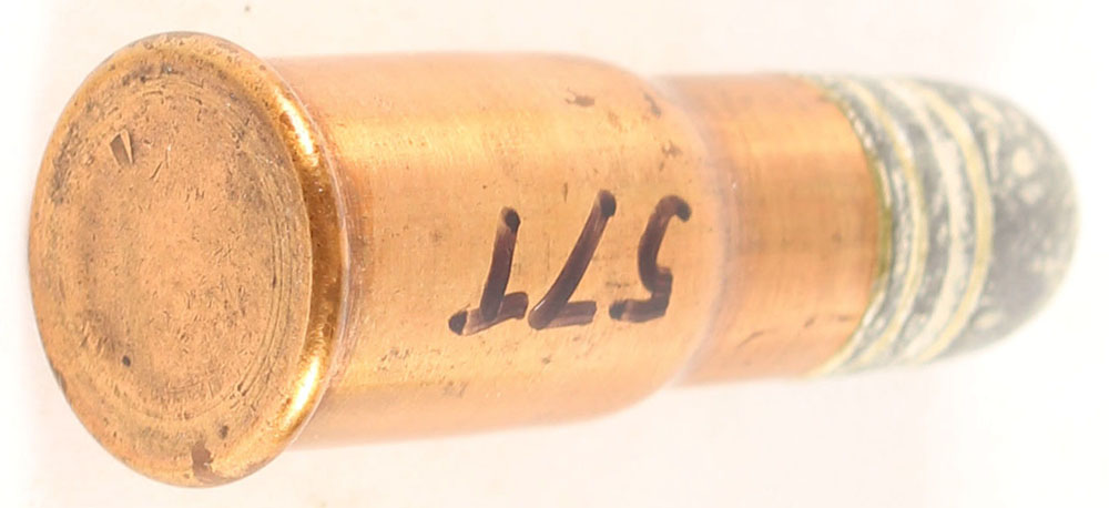 56-46 Spencer Rimfire Long Case Long Neck. NHS. RN Lead. Case Length 1.20''. Probably made by USC. See Photo. A scarce vairient. Grade Excellent - Value: 100 to 150