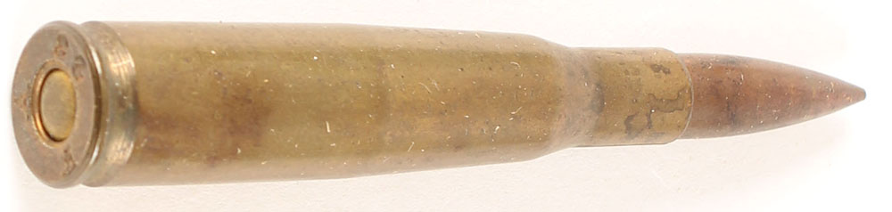 .256 Expirimental. HS:''F A 28''. PT CJ FMJ. Actual measurements are: Bullet Diameter =.264'', Case Length =2.195'', Rim Diameter =.4695'', Overall length= 3.003''. Crack in neck. See HWS I, pg 268. Grade Very Good - Value: 60 to 120