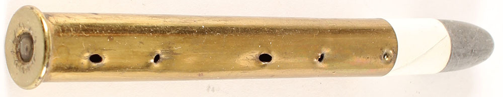 45x3.25'' Sharps. NHS. Board Dummy with four mounting holes. Punch crimp holding bullet in place. Grade Very Good - Value: 40 to 150