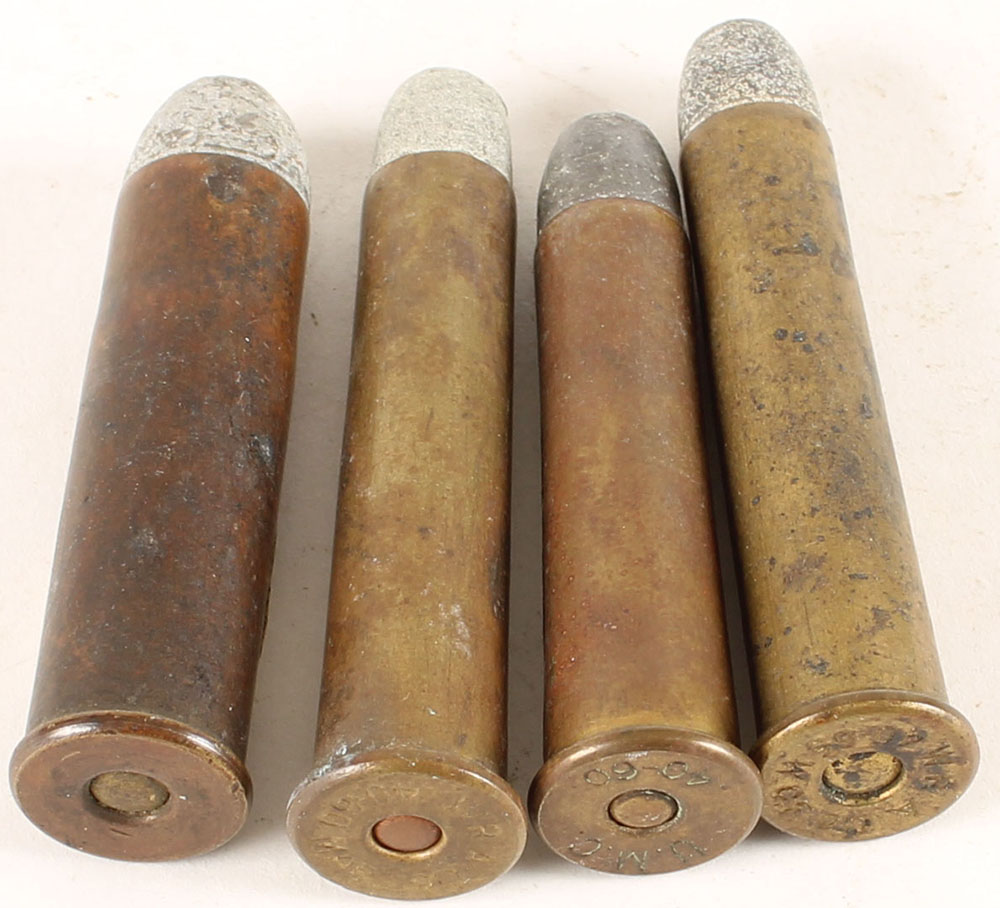 Lot of 4 cart., (1) H/S: UMC 40-60, Br. Pri., FNL, (1) H/S: W.R.A.Co. 40-65 W.C.F, Br. Pri., FNL, (1) H/S: W.R.A.Co. 40-60 MAR., Br. Pri., FNL, (1) H/S: none, 50-95 Win with an Express FNL bullet, Br. Pri. Graded: Very Good ++ - Value: 20 to 50