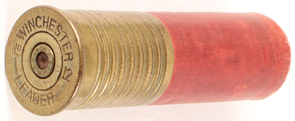 H/S: ''Winchester Leader No. 12'', Experimental, 2 5/8'' OAL, red paper case, has a red plastic TW. Grade: Very Good + - Value: 40 to 200