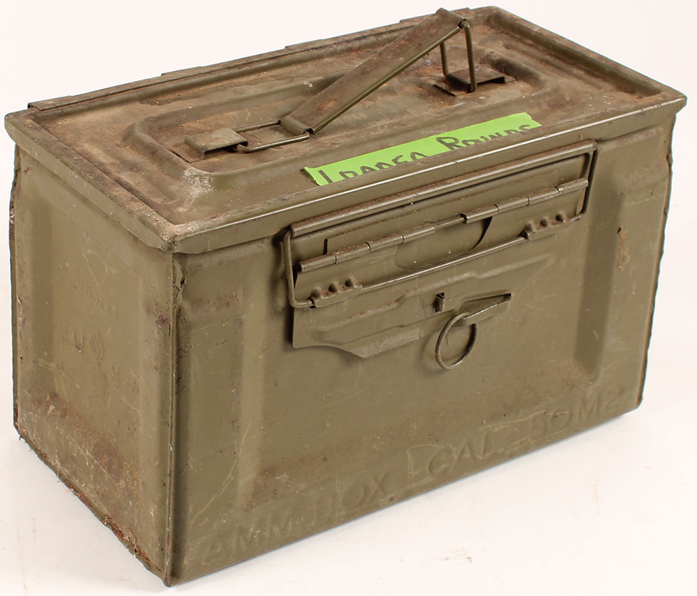 US, .50 cal ammo can, old side open style, empty, inside is clean with no rust. Grade: Very Good - Value: 10 to 30