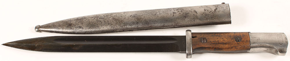 Rich.Abr. Herder, Solingen, M1884/98 Third Pattern (K98k), Bayonet with sheath, smooth wood grips, blade is blued, guard & pommel left white, ricaso is marked ''clc 1942.'', ''5534'', the sheath markings do not match bayonet. Grade: Excellent - Value: 40 to 80