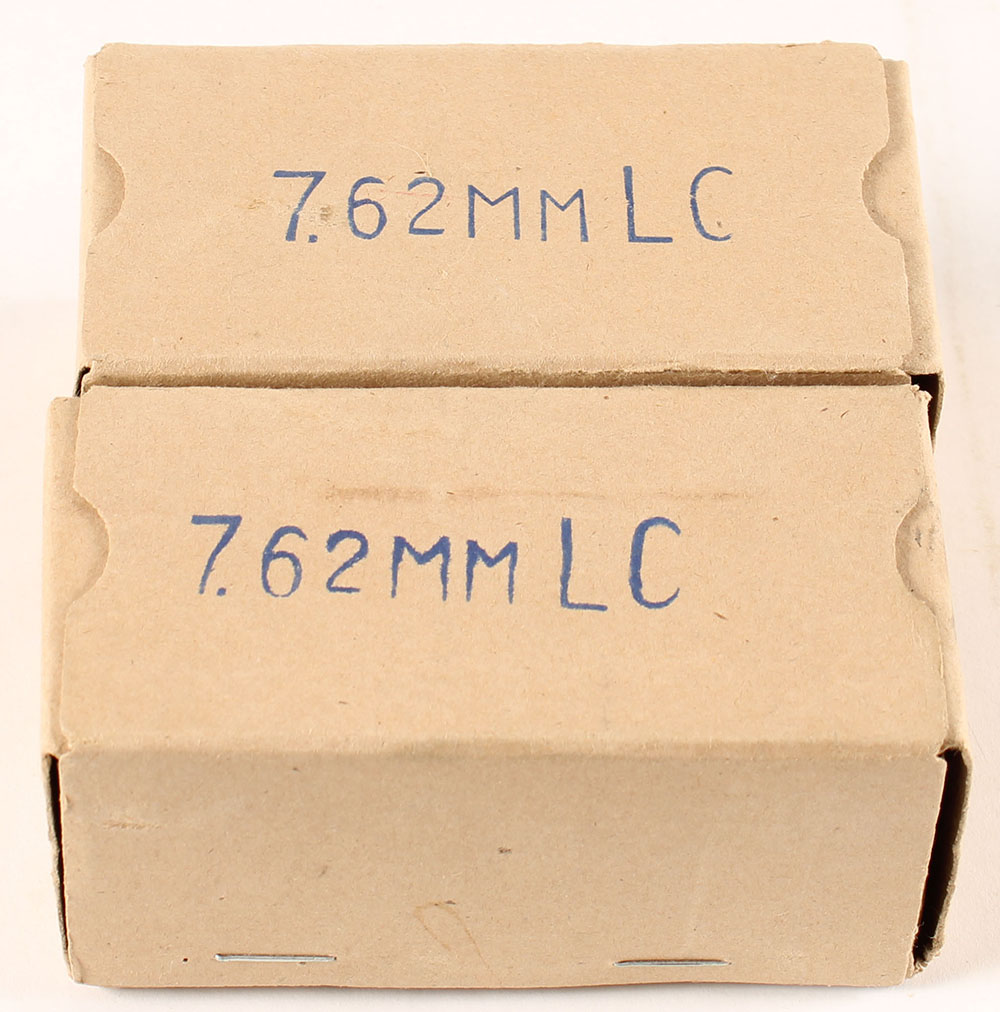 Lot of two, Chinese, 7.62mm (.30 Carbine) 50 Rd. Box's, both Full, ammo is excellent but is known to be Berdan primed & corrosive. Grade: Excellent - Value: 20 to 30