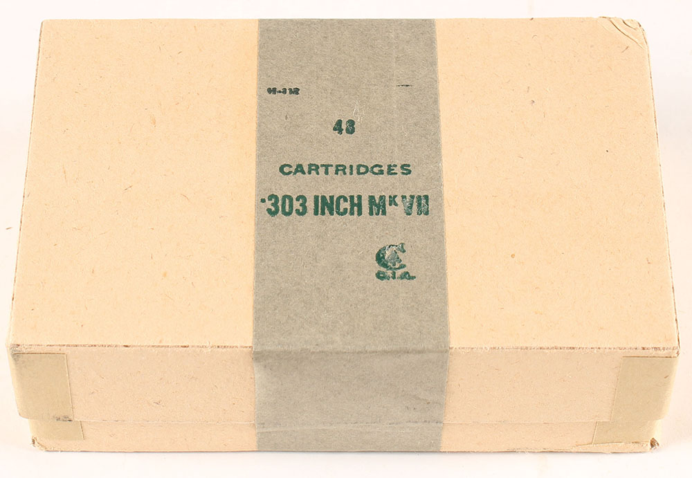 Quebec Co. LTD, .303 inch Mk VII (.303 British), 2pc, FULL & SEALED, brown box with gray label & green print, box has rub wear. Grade: Excellent - Value: 24 to 36