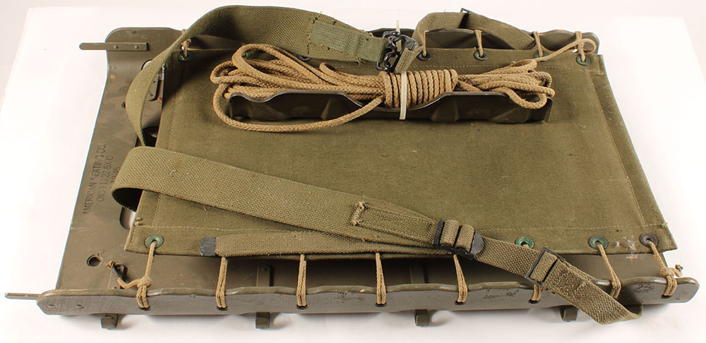 US, American Seating Co, Wood pack board frame, dated 1-12 -1945. has canvas straps, backing, & rope. Has scuff & scratch marks. Grade: Very Good + - Value: 30 to 120