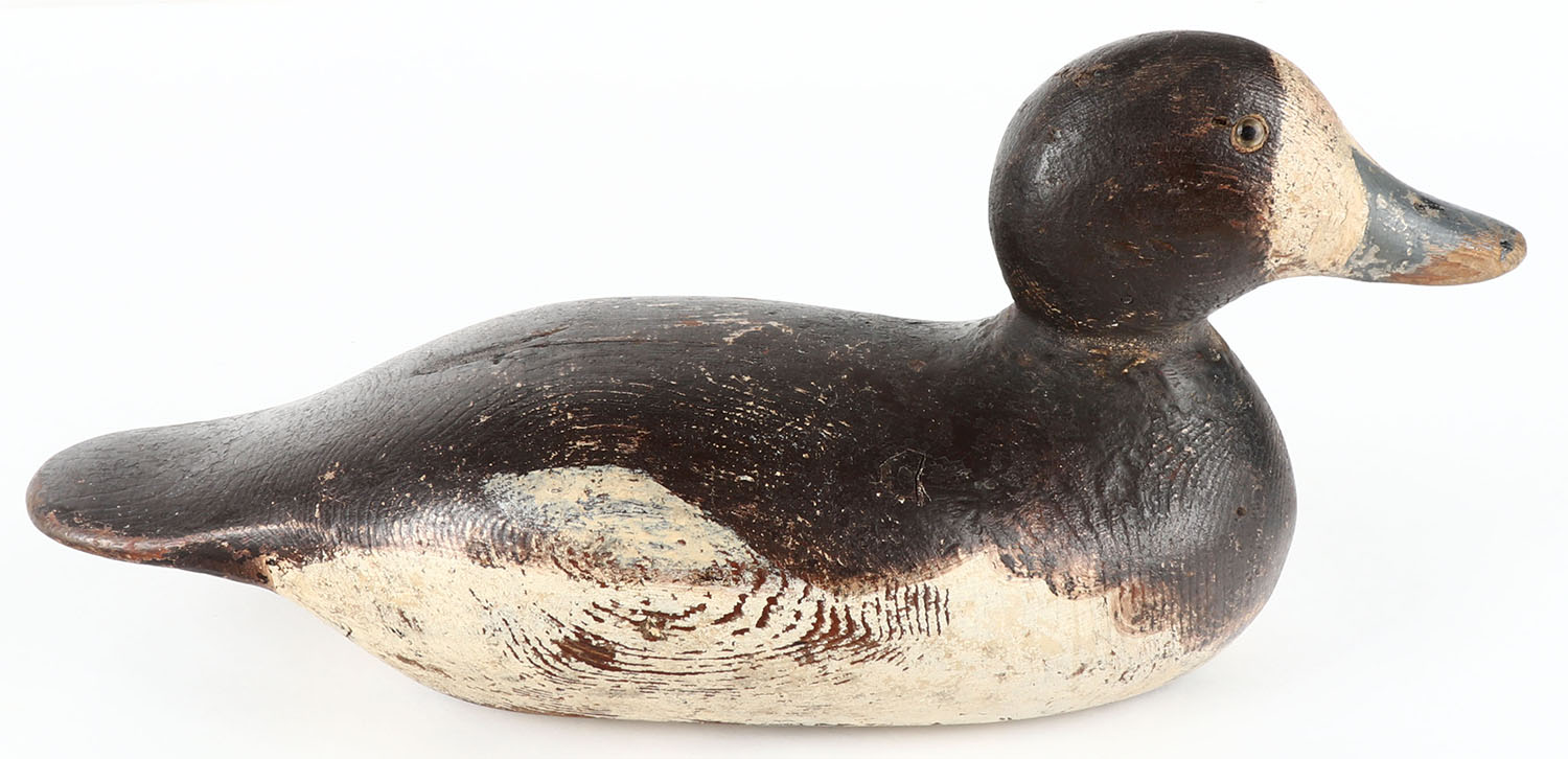 Standard Bluebill Hen by Mason Decoy Company, Detroit, MI, 1896-1924. Glass eyes, solid wood, original paint, structurally excellent, has replaced neck filler. Grade: Very Good - Value: 40 to 100