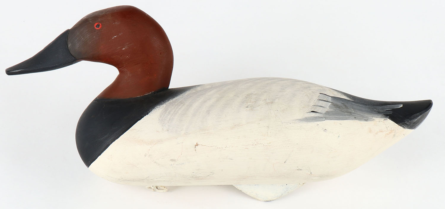 Canvasback Drake by unknown maker from MD, painted eyes, solid wood, original paint, structurally excellent, 16'' OAL. Grade: Excellent + - Value: 30 to 60