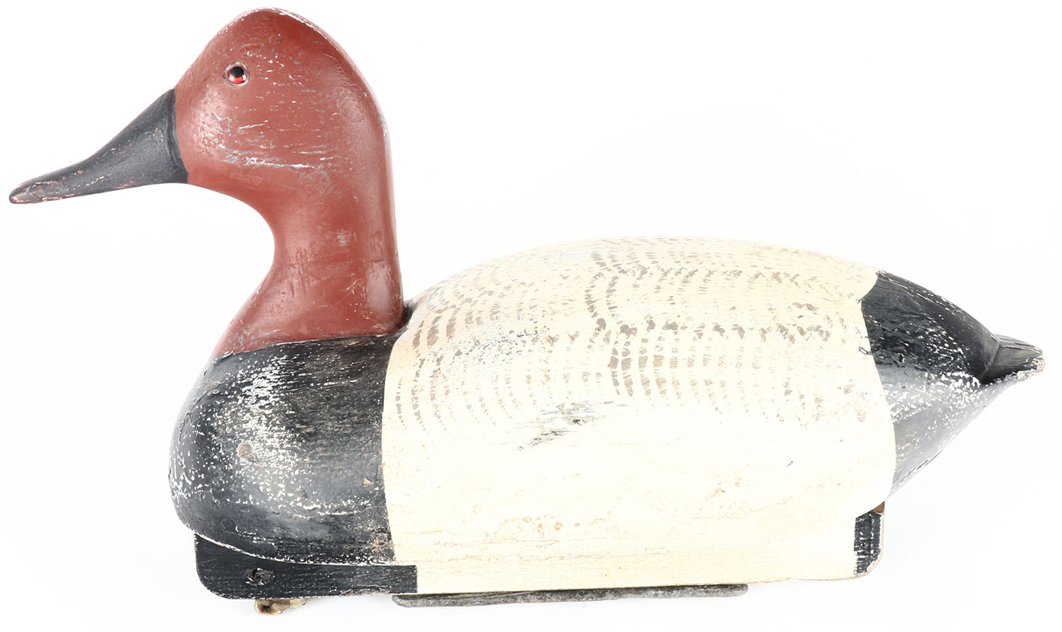 Canvasback Drake by unknown maker, GE, hollow wood with bottom board, old repaint, structurally excellent, 16'' OAL. Grade: Excellent - Value: 40 to 80
