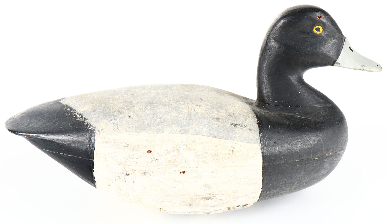 Bluebill Drake by unknown NJ maker, GE, hollow wood, original paint, structurally excellent, 14'' OAL. Grade: Excellent - Value: 20 to 40