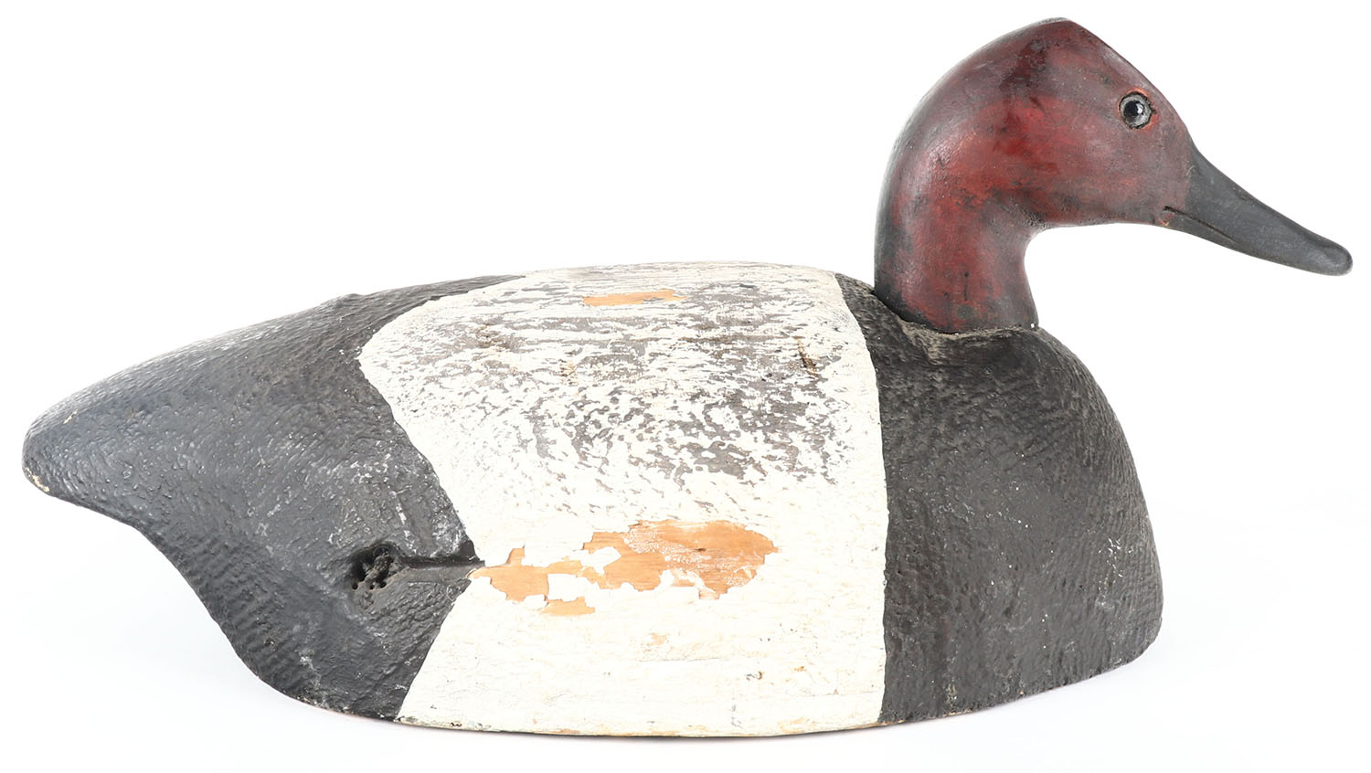 Canvasback Drake by unknown maker, GE, solid wood, original paint, structurally excellent, 17'' OAL. Grade: Excellent - Value: 30 to 60