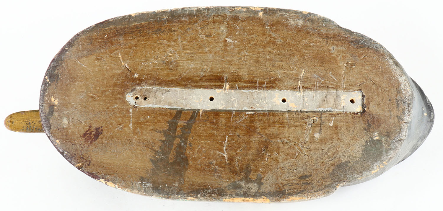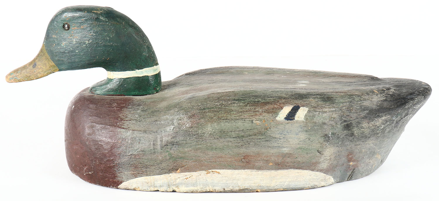 Mallare Drake by unknown maker, TE, balsa wood, original paint, structurally excellent, bill has hair line crack, 19'' OAL. Grade: Very Good - Value: 20 to 60