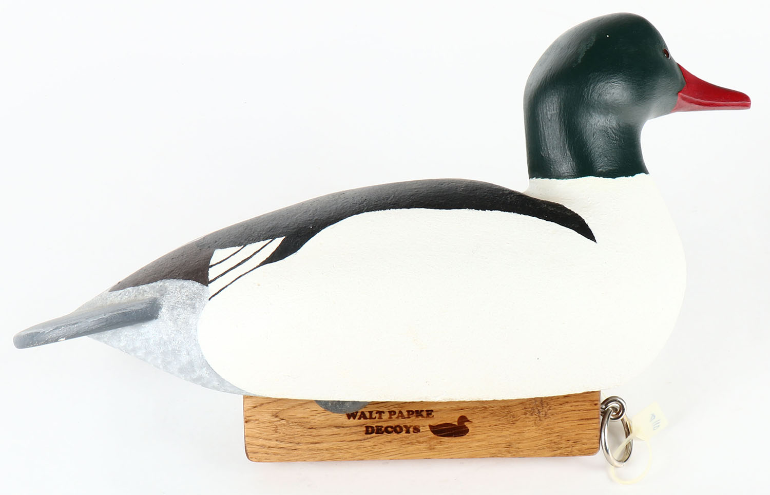 Common Merganser by Walt Papke, GE, cork body, mint original paint, 19'' OAL. Grade: MINT - Value: 60 to 150