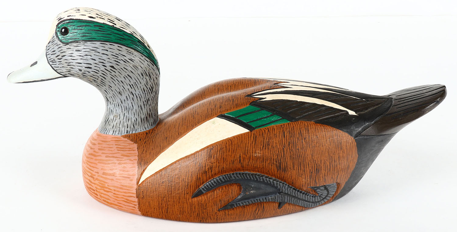 Widgeon Drake by REL Munger, Chincoteague, VA, GE, solid wood, nice original paint, 13'' OAL. Grade: Excellent ++ - Value: 20 to 60