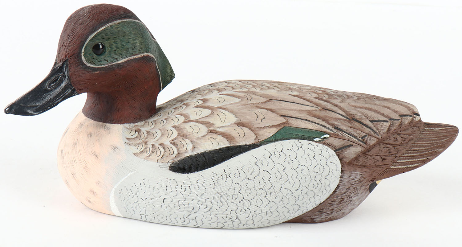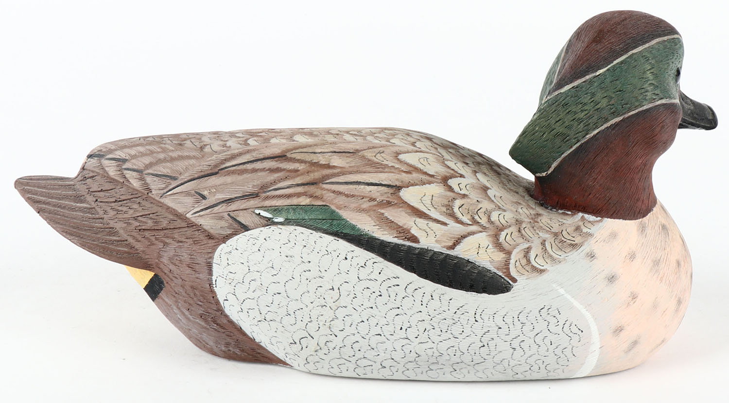 Greenwing Teal Drake by T. A. Brice, GE, hollow wood, original paint, 9'' OAL. Grade: Excellent ++ - Value: 20 to 60