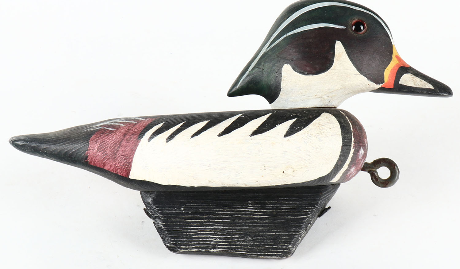 Woodduck Drake by unknown maker, GE, solid wood, original paint, 9'' OAL. Grade: Excellent - Value: 16 to 40