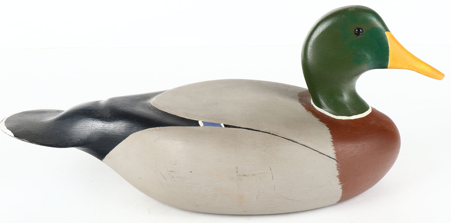 Mallard Drake by George Sanis, c1970, GE, Hollow wood, original paint, 17'', OAL. Grade: Excellent + - Value: 20 to 80