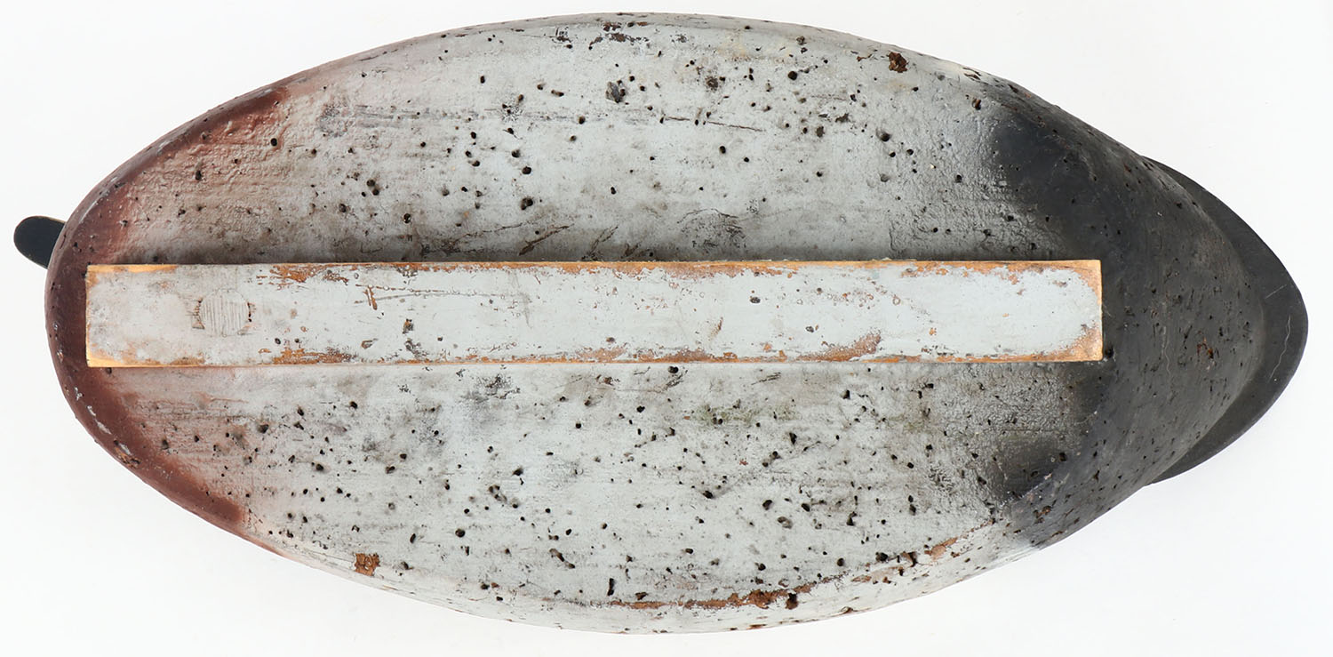 Mallard Drake by LL Bean, unmarked on keel, glass eyes, solid cork body, wood head, original paint, structurally excellent, 21'' OAL. Grade: Excellent - Value: 20 to 50