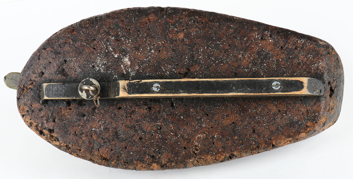 Black Duck by unknown maker, glass eyes, solid cork body, wood head, original paint, structurally excellent, 18'' OAL. Grade: Very Good ++ - Value: 10 to 50