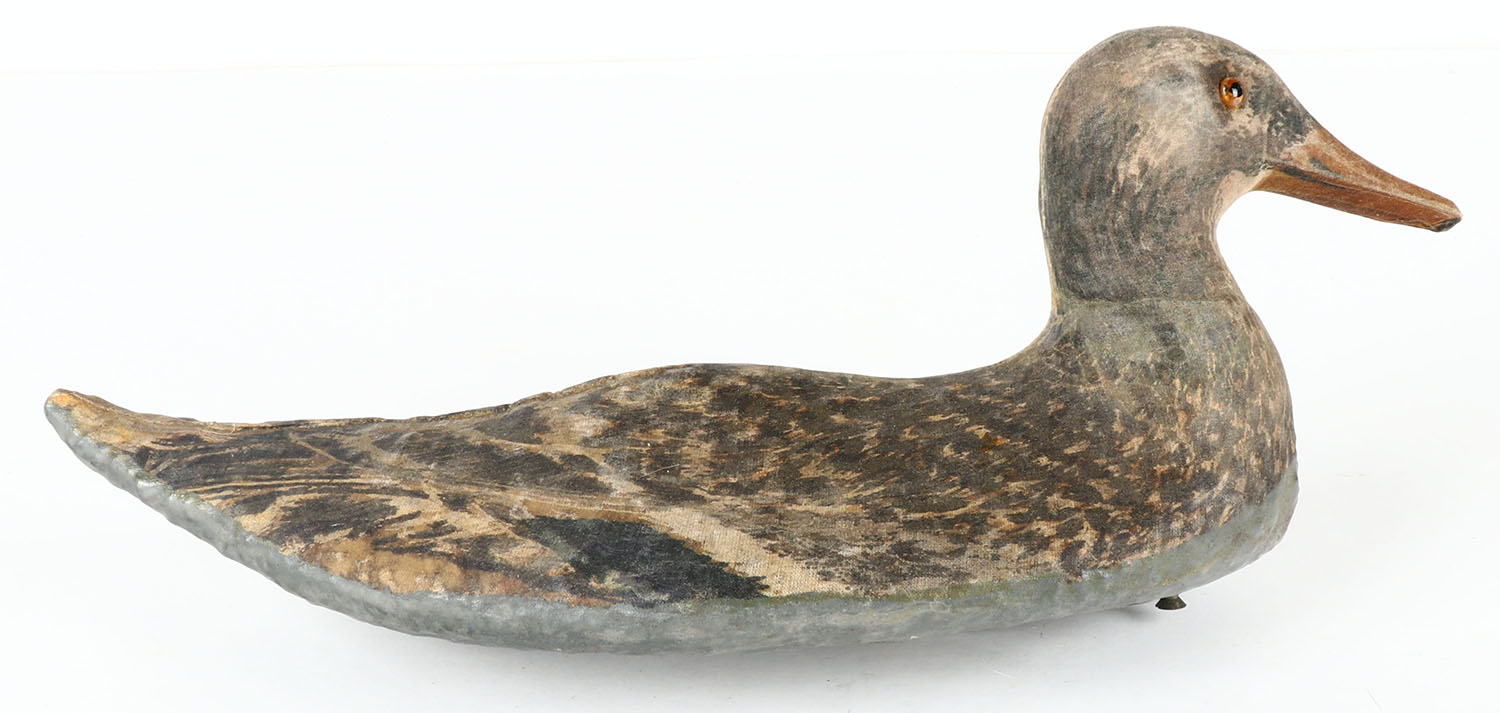 Mallard Hen by Oliveros Decoy Co., Houston, TX, glass eyes, canvas over cork, near mint original paint, structurally excellent. Grade: Excellent ++ - Value: 20 to 40