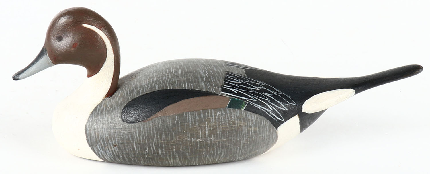Miniature Pintial Drake by Floyd Isotolo, Tucson, AZ, PE, solid wood, mint original paint, signed on bottom, 6 1/2'' OAL. Grade: Excellent ++ - Value: 20 to 60