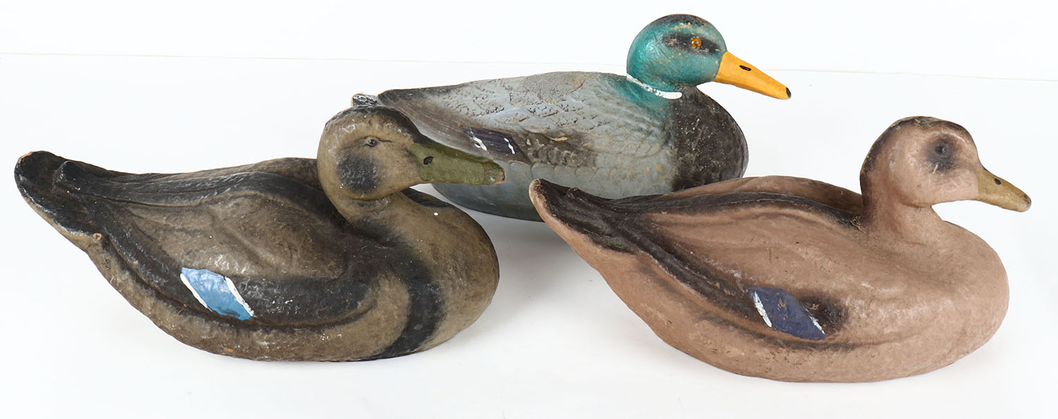 Lot of paper mache' decoys. Grade: Very Good - Value: 2 to 30