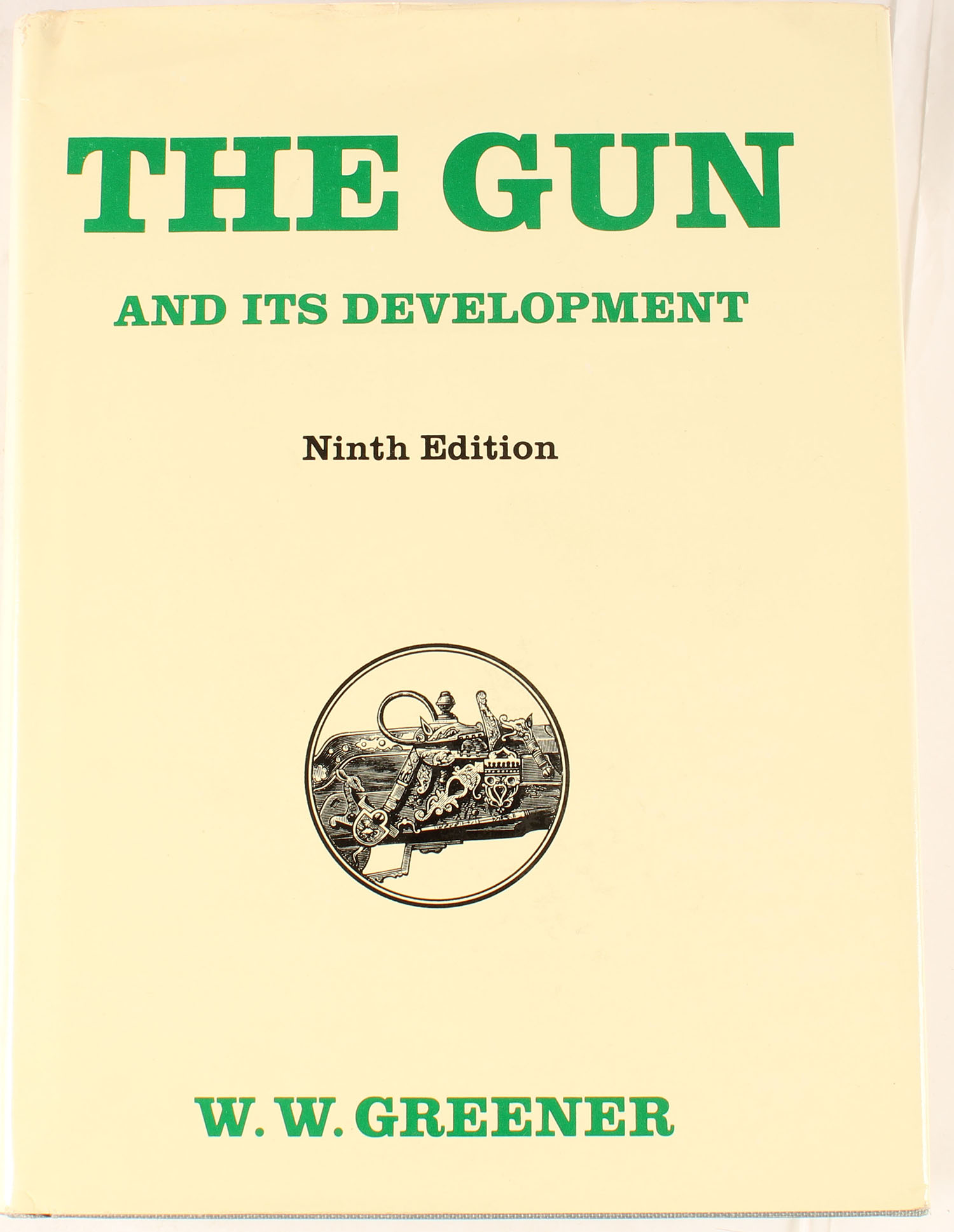 The Gun and It's Development by W.W. Greener Ninth Edition, 6 1/2'' x 8 1/2''. 804 pages, pages clean, binding tight, hardcover and dustjacket very good, b/w images. Value: $50 Grade: Very Good ++ - Value: 2 to 50