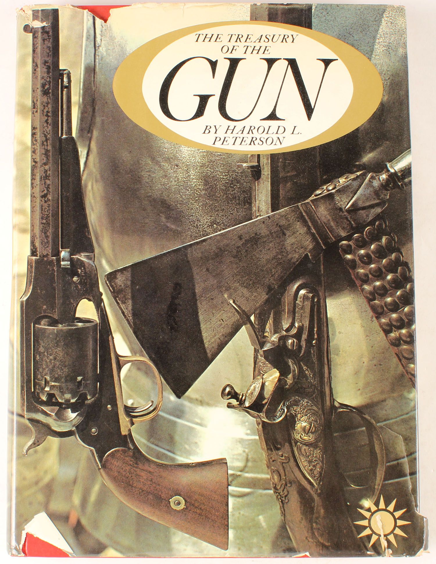 The Treasury of the Gun by Harold L. Peterson 1962, 8 1/2'' x 11 1/2''. 246 pages, pages clean, binding tight, hardcover very good, dustjacket has rips, b/w and colored images. Value: $100 Grade: Very Good - Value: 2 to 100
