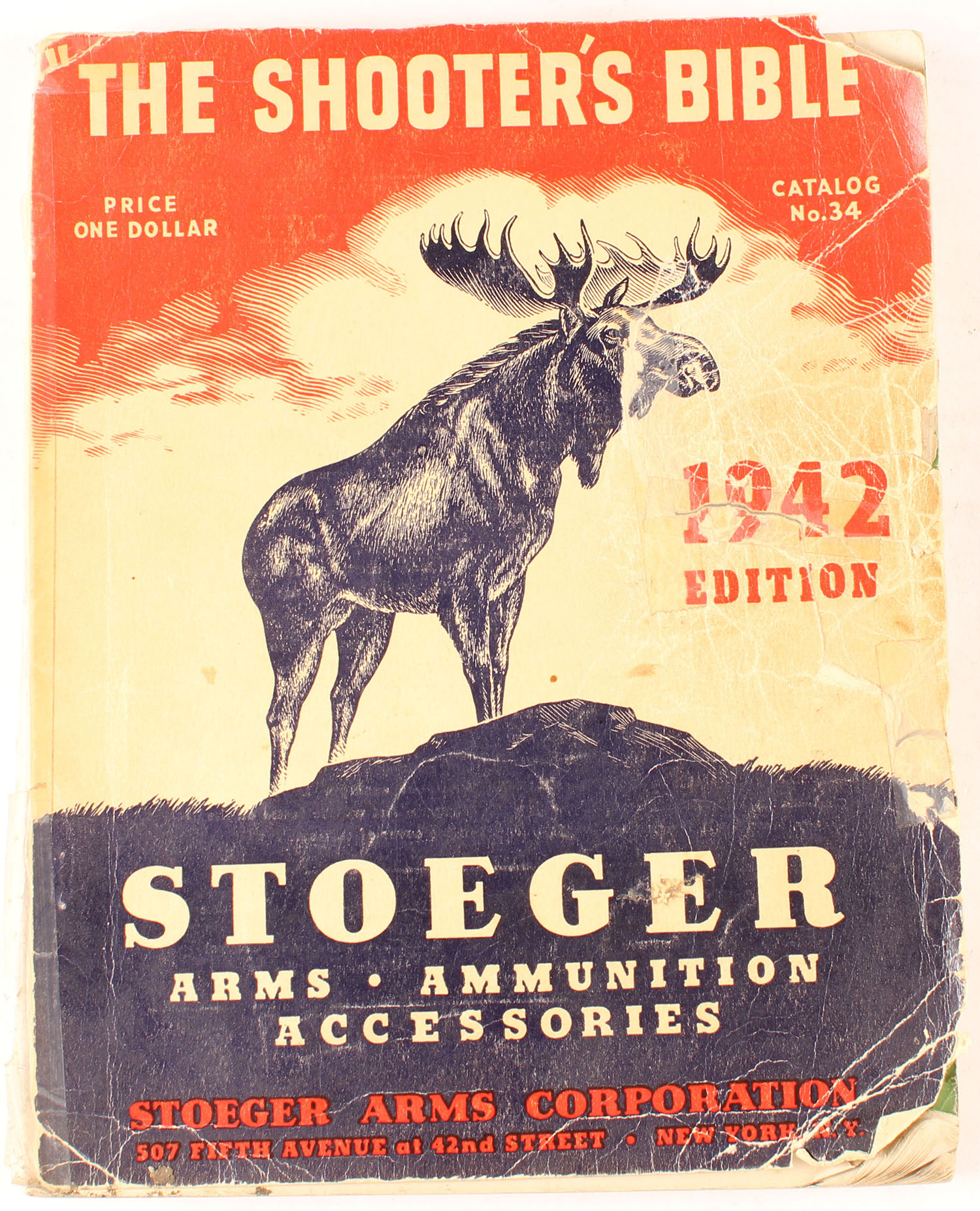 The Shooter's Bible, Stoeger Arms Ammunition Accessories 1942 Edition, 8'' x 10''. Pages clean, binding tight, papercover very good with wear. Grade: Very Good ++ - Value: 2 to 10