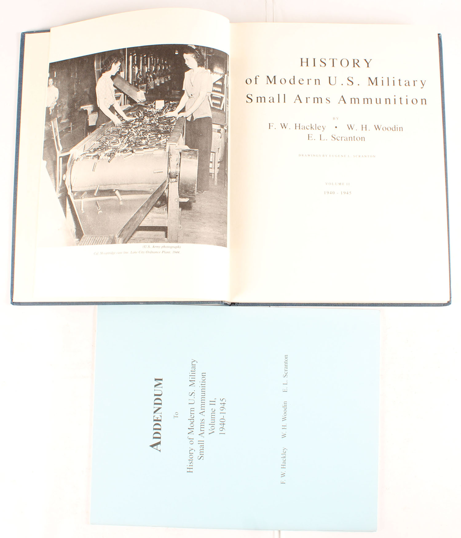 History of Modern U.S. Military Small Arms Ammunition Volume II: 1940-1945 by F.W. Hackley 1978, 8 1/2'' x 11''. 297 pages, pages clean, binding tight, hardcover very good. Value: $500 Grade: Very Good ++ - Value: 100 to 500