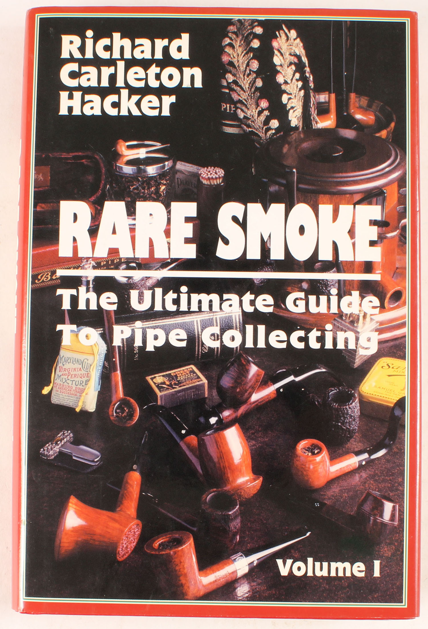 Rare Smoke: The Ultimate Guide To Pipe Collecting by Richard Carleton Hacker Volume 1 1999, 5 1/2'' x 8 1/2''. 265 pages, pages clean, binding tight, hardcover and dustjacket excellent, colored and b/w images. Value: $240 Grade: Excellent + - Value: 10 to 240