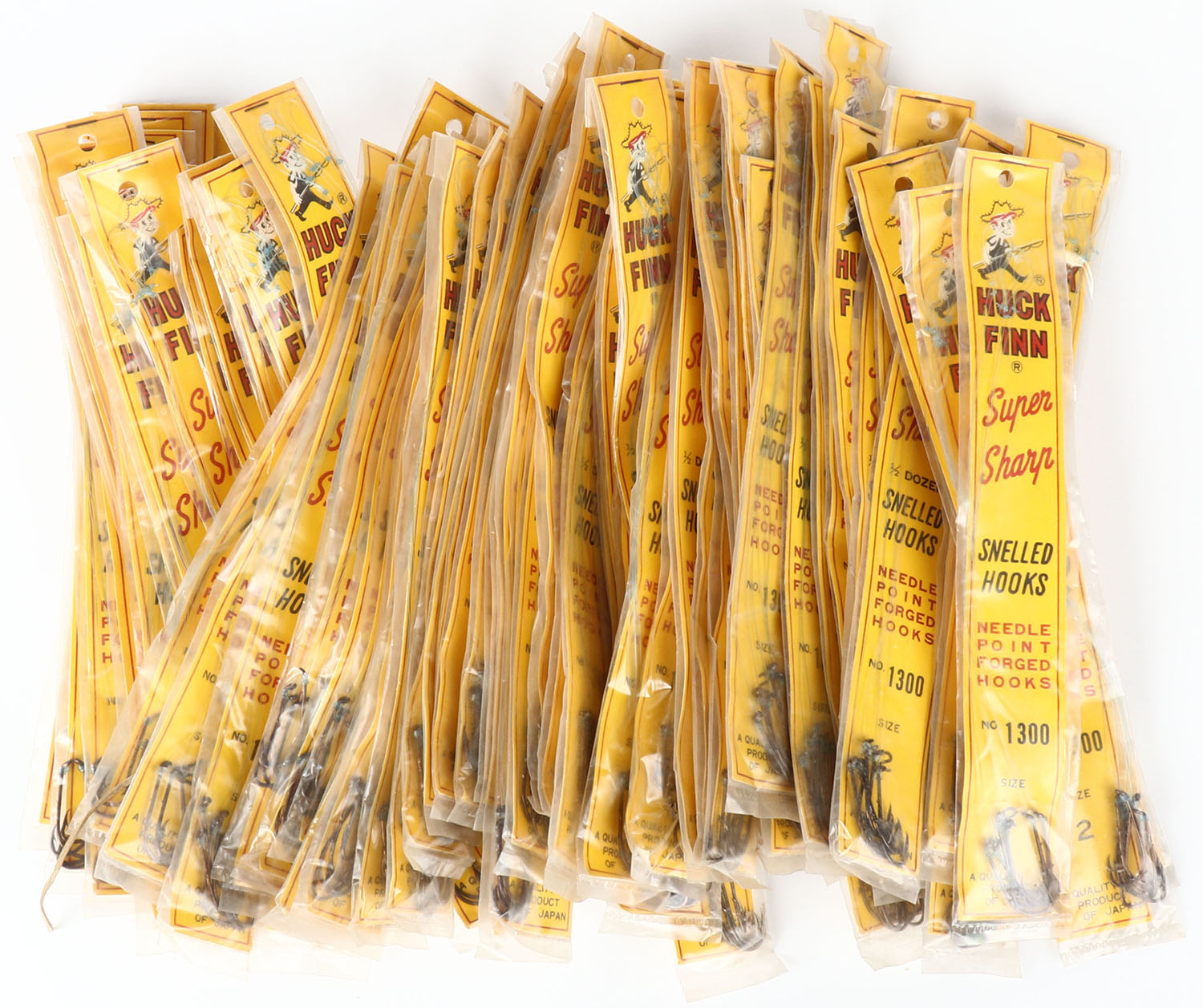 | Large Lot of Huck Finn fishing hooks with leader on cards. Grade...