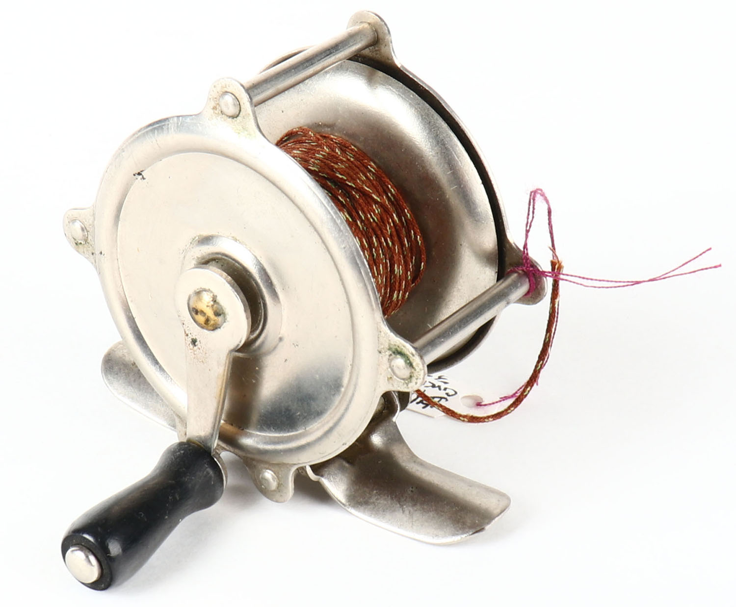 Unmarked small reel, reel turns nice, single black handle. Grade: Excellent ++ - Value: 10 to 50