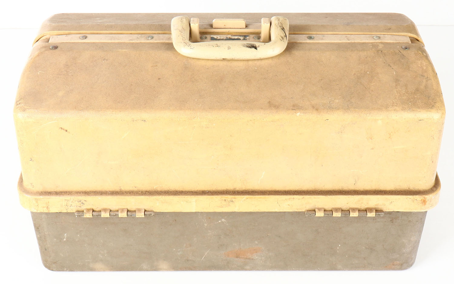 Large tackle box full of gear for bass & trout, 19'' wide. Grade: Very Good - Value: 10 to 50