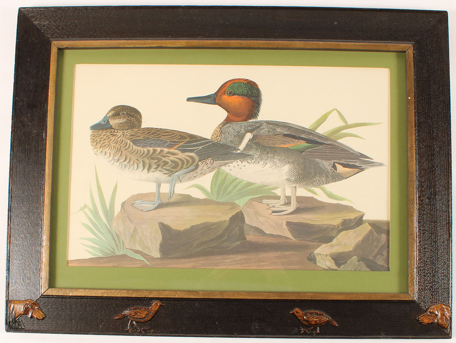 Early print by unknown maker of a pair of Greenwing Teal, beautiful image & detail, 17 1/2'' x 11'' image size. Grade: Excellent - Value: 20 to 100