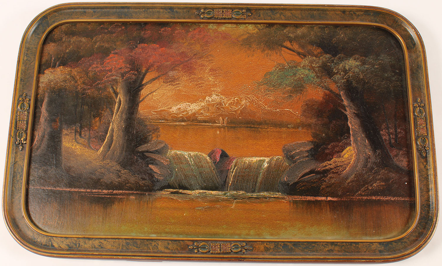 early painting on board of small waterfall & ponds, image size 19 1/2'' x 11 1/2'', framed. Grade: Very Good ++ - Value: 6 to 30