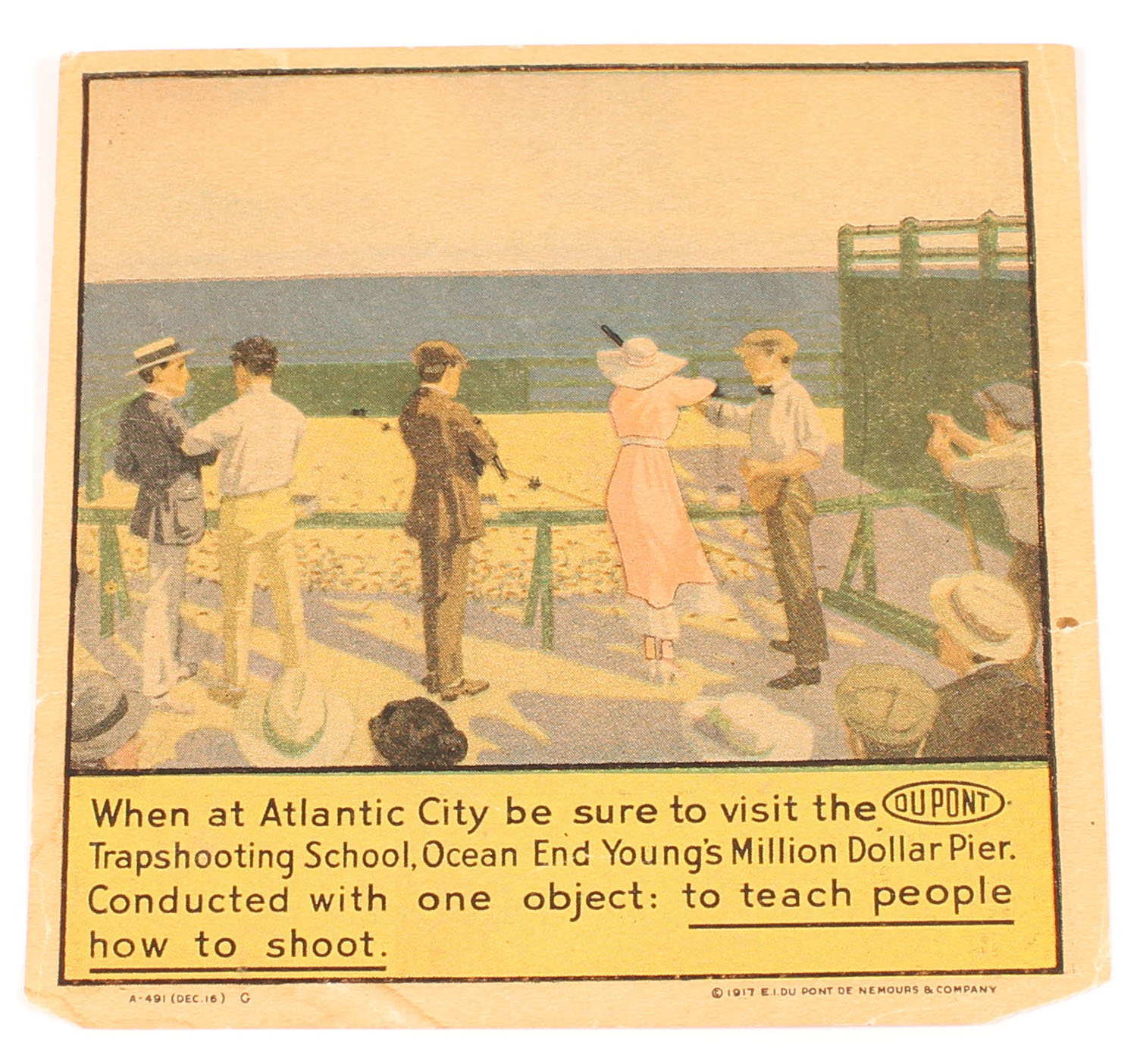 Dupont Insert pictures men and women shooting trap in Atlantic City at the Ocean End Young's Million Dollar Pier. Grade: Excellent - Value: 30 to 90