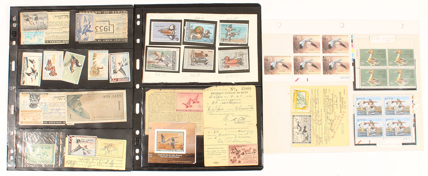 Lot of Federal Duck stamps, has first year 1934 unsigned. Grade: Very Good - Value: 20 to 200