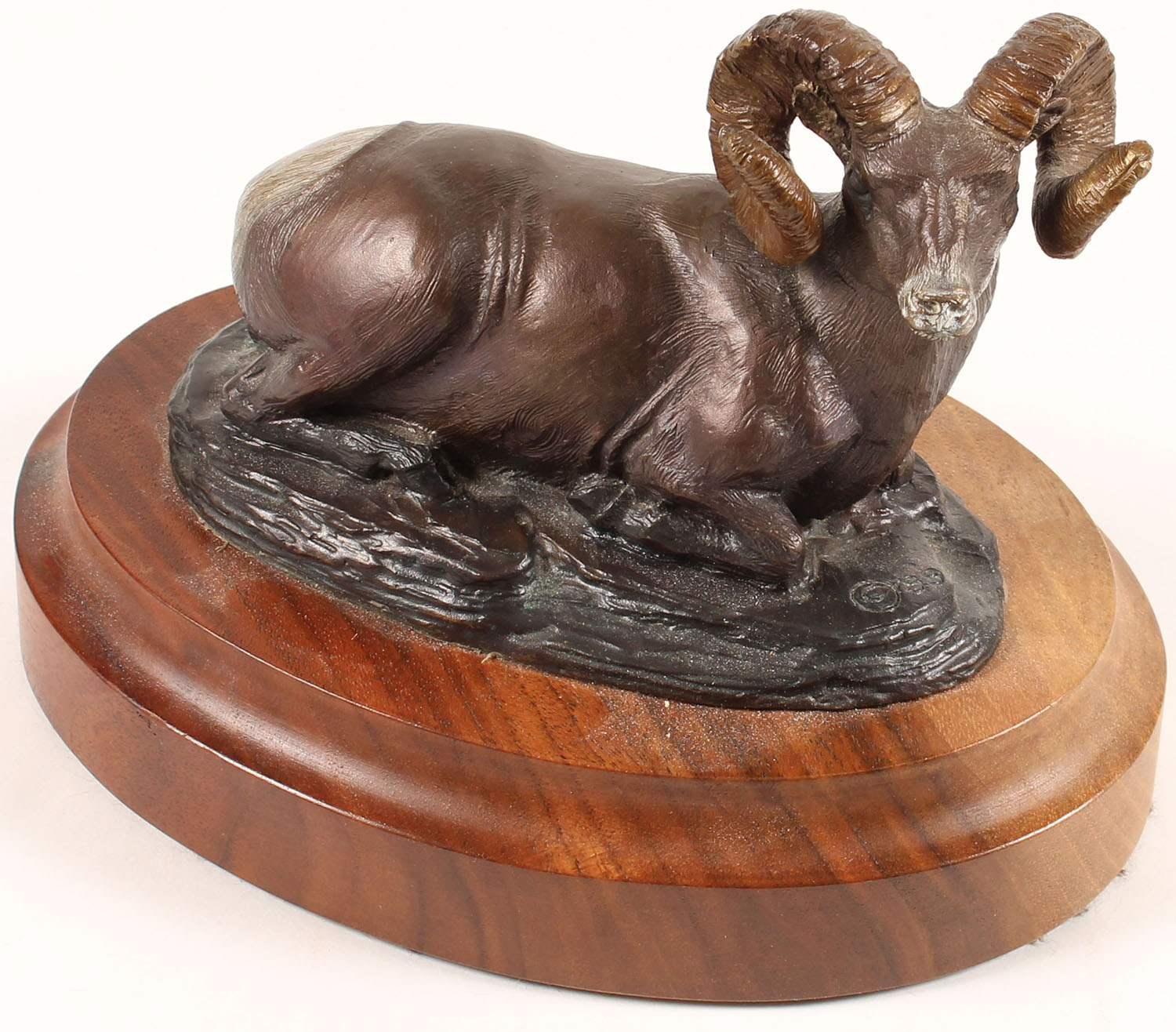 Big Horn Sheep Bronze ''HIGH COUNTRY MONARCH'' by Allan Schwindt, 7 1/2'' wide. Grade: Excellent - Value: 100 to 500