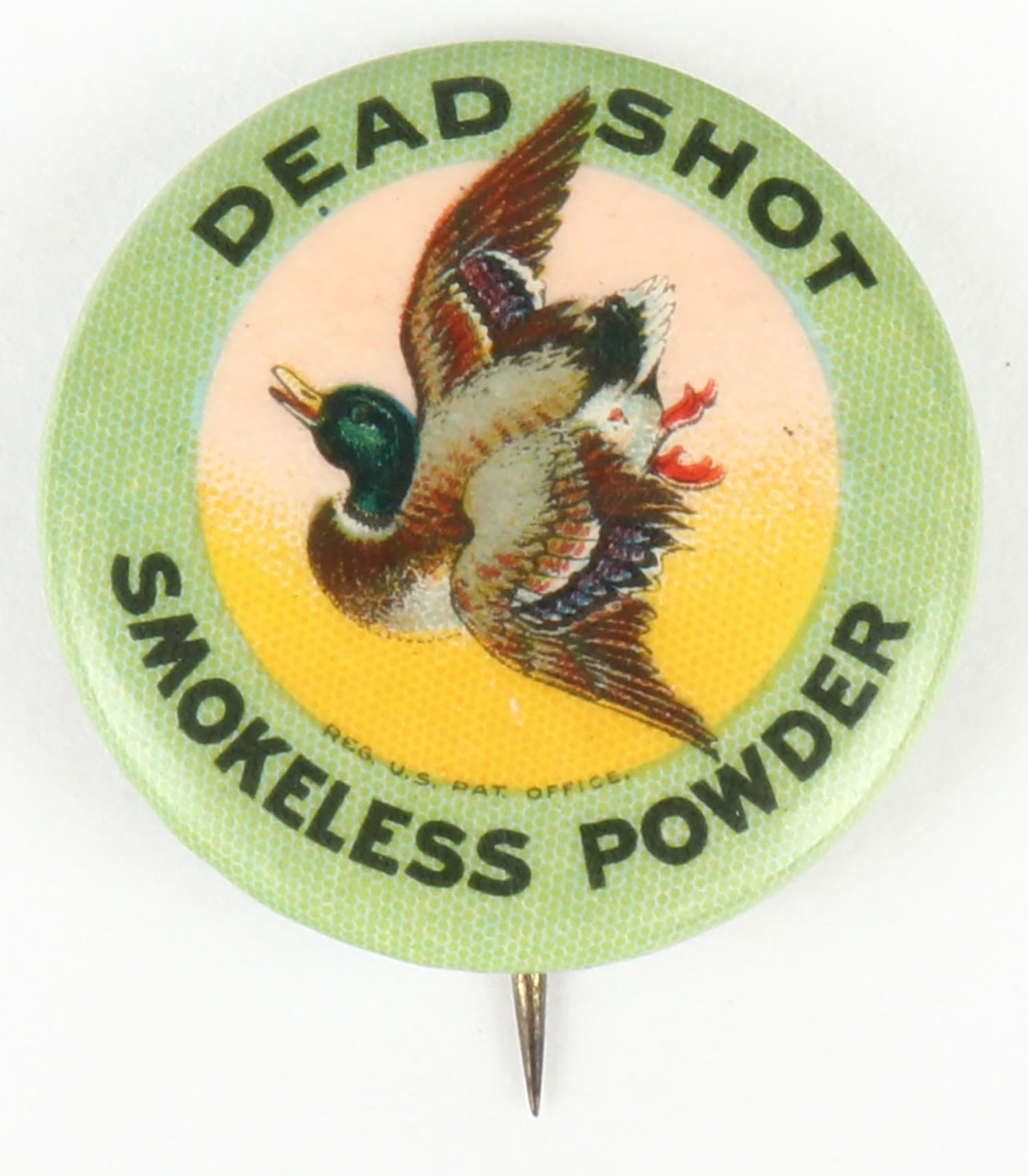 Deadshot pinback, TF Moore Co. paperback. Grade: Excellent - Value: 10 to 50