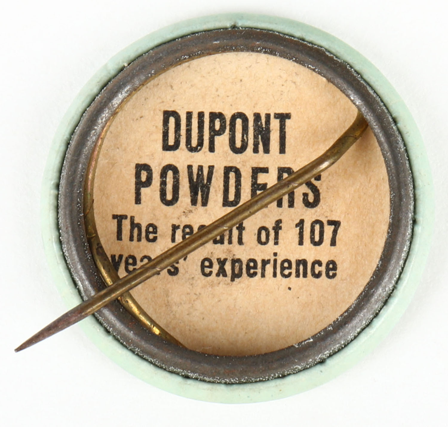 Infalliable pinback, dupont powders paperback. Grade: Excellent - Value: 10 to 50