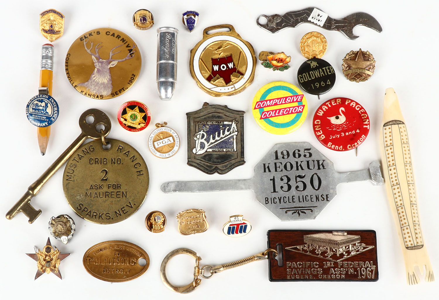 Lot of various pinbacks. Grade: Excellent - Value: 10 to 50