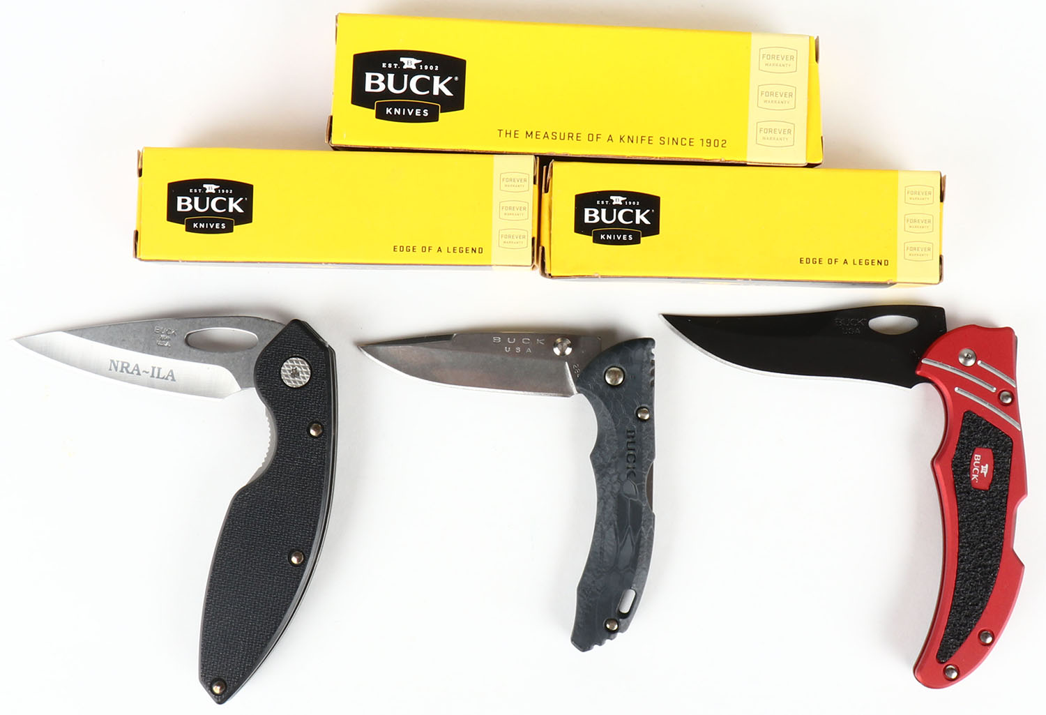 Lot of 3 Buck folding knives, in boxes. Grade: Excellent ++ - Value: 20 to 80