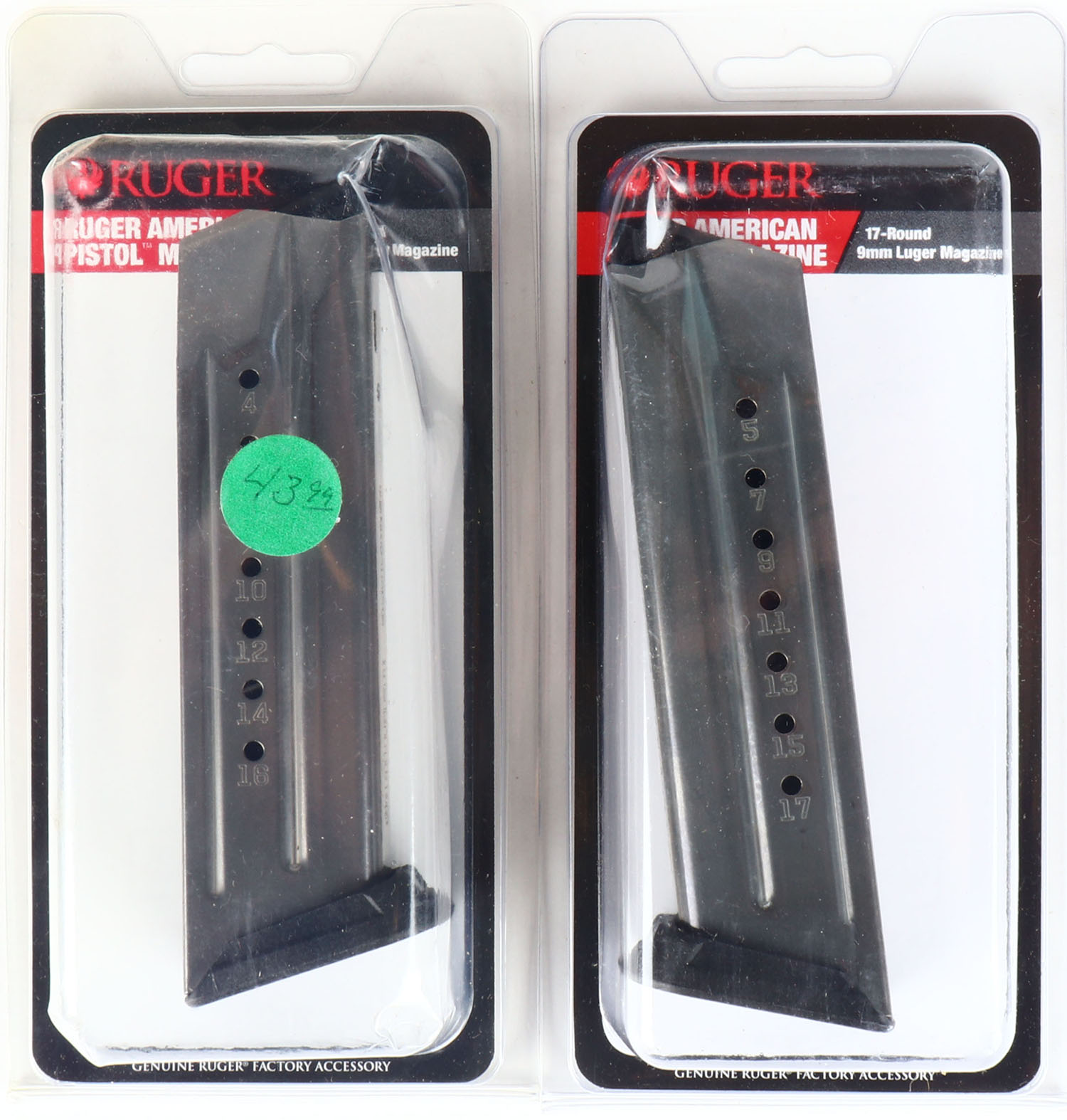 Lot of 2 Ruger American 9mm 15 rd pistol mags. Grade: Excellent ++ - Value: 16 to 50
