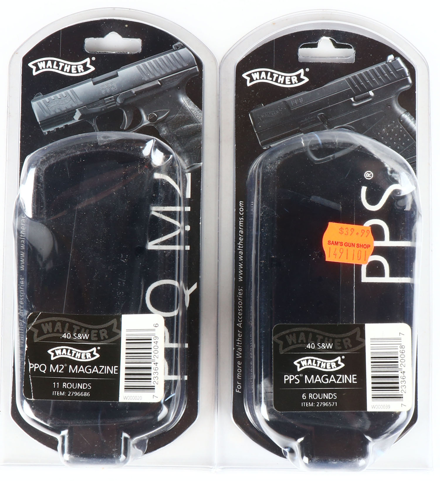 Lot of 2 Walther pistol mags, 6 rd .40 S&W cal. Grade: Excellent ++ - Value: 10 to 40