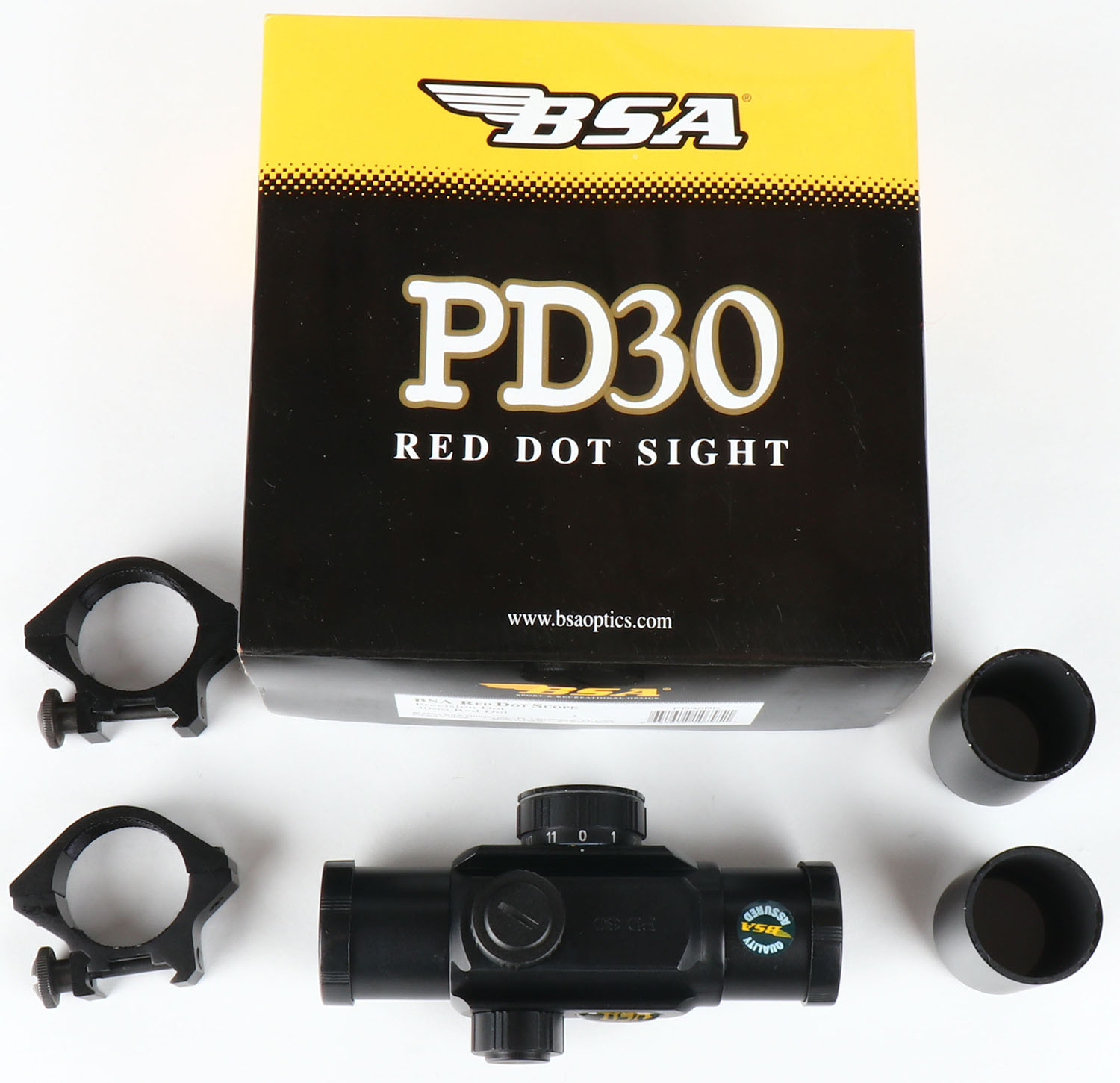 BSA PD30 red dot sight, in box. Grade: Excellent - Value: 10 to 90