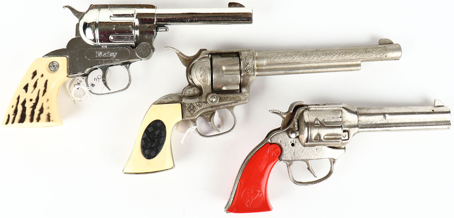Lot of 3 Vintage Cap pistols, Dasiy, Halco 3 marshall and kilgore. Grade: Excellent - Value: 30 to 90