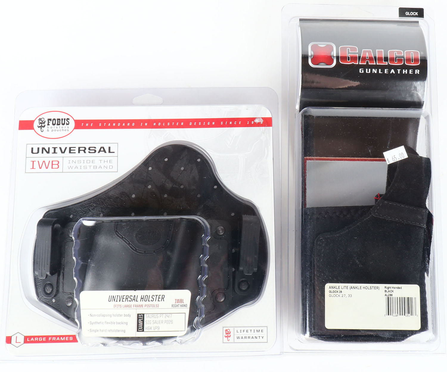 Lot of 2 pistol holster Galco Glock 26 ankle holser and Fobus Universal holster. Grade: Excellent - Value: 20 to 60