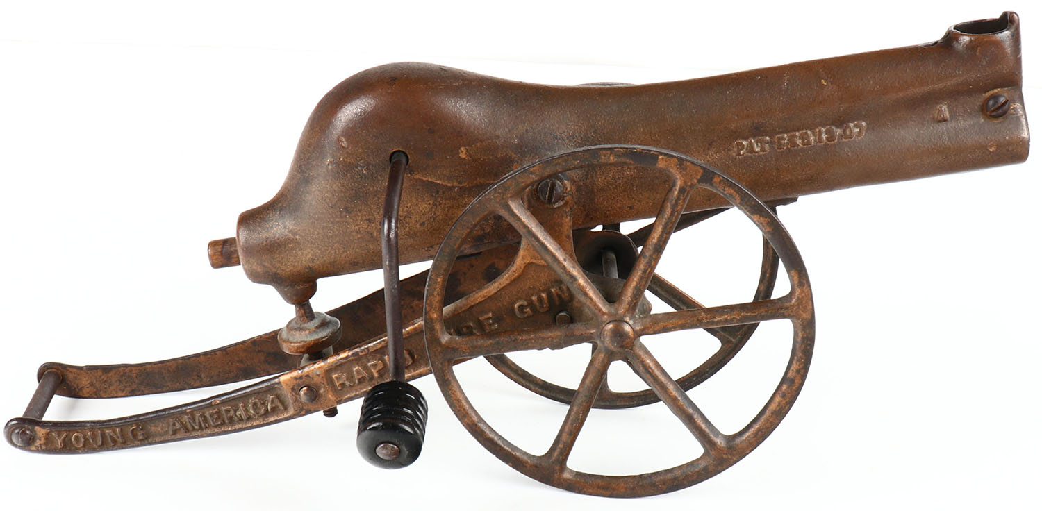 Antique Young Ameirca rapid fire cannon, 16'' OAL PAT Feb 19 07. Grade: Excellent - Value: 50 to 200